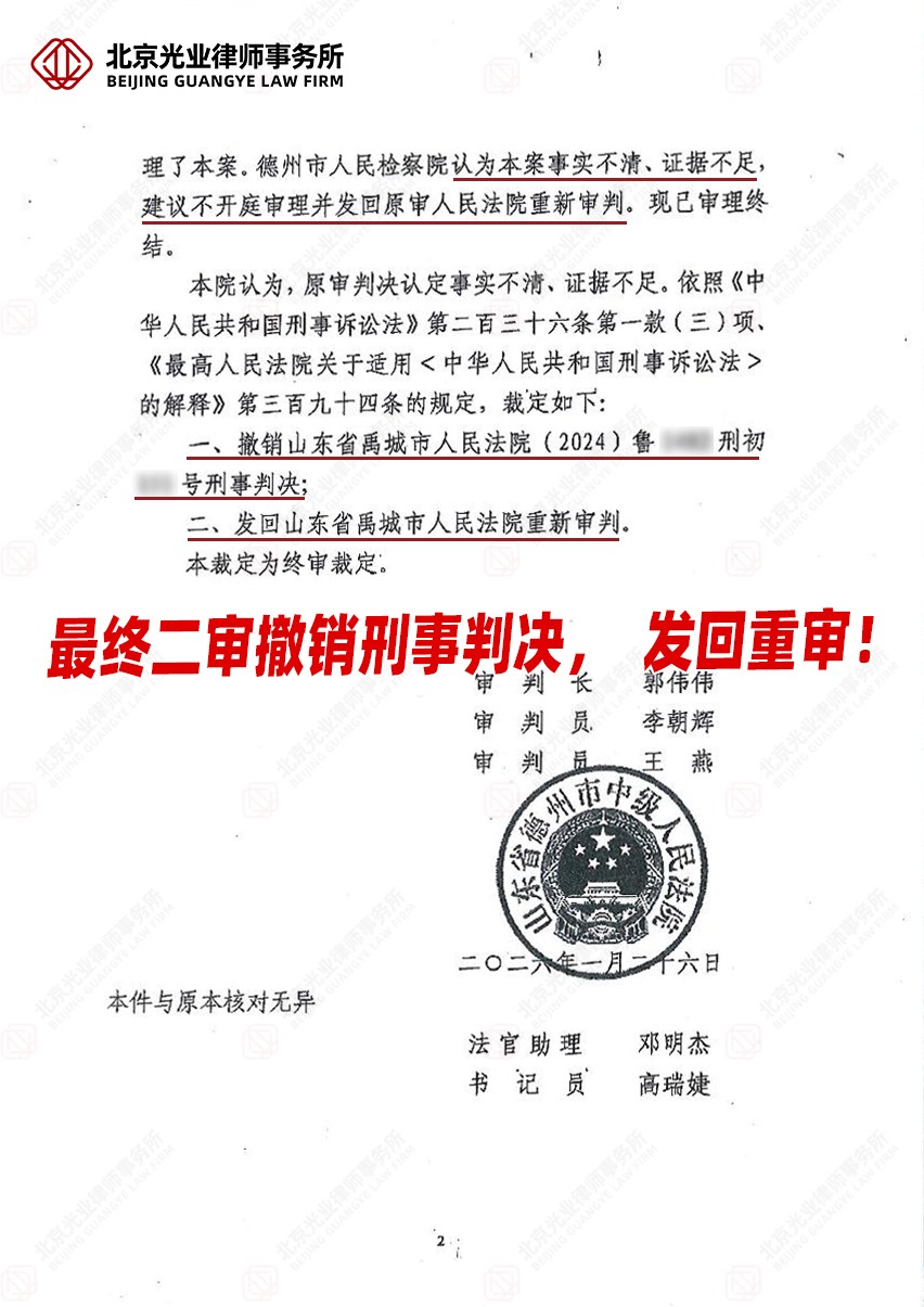 最终德州市中级人民法院经审理认为:“原审判决认定事实不清、证据不足。”并依法裁定:撤销禹城市人民法院一审刑事判决;发回禹城市人民法院重新审判。
